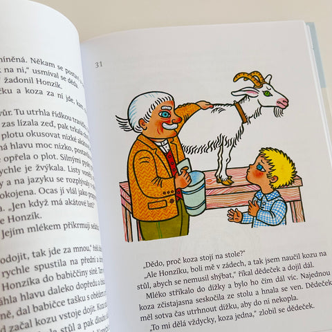 Zbrusu nové vydání veselého, laskavého a dojemného příběhu malého Honzíka, který jede sám vlakem k babičce a dědečkovi na vesnici, kde zažívá každodenní malá dobrodružství. Kultovní kniha, která stále oslovuje již mnoho generací malých čtenářů.
